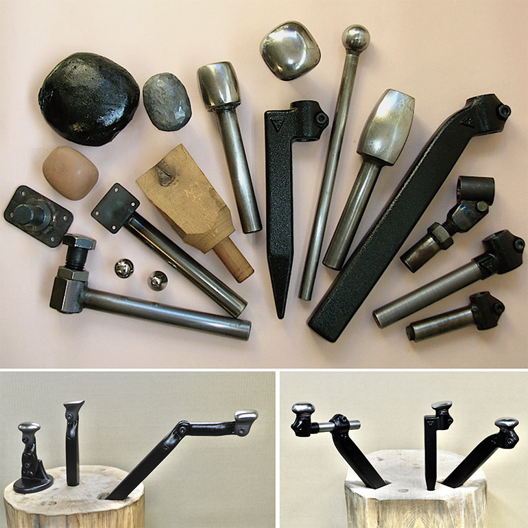 また、その鍛金技法に使う当て金という道具の改良を研究し、下記のホームページに公開しています。画像はその例です。